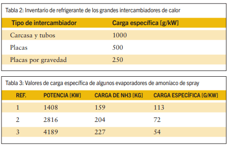 Los valores típicos del inventario de refrigerante en grandes intercambiadores de calor industriales, según Pearson [13], se muestran en la Tabla 2.