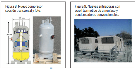 Probablemente, el desarrollo reciente más importante es el nuevo compresor hermético que se utiliza tanto en refrigeración como en bomba de calor. Está diseñado específicamente para su uso con amoníaco. La capacidad nominal en refrigeración (a -5°C/50°C) es de 45 kW, mientras que en bomba de calor es de 47 kW.